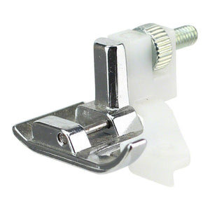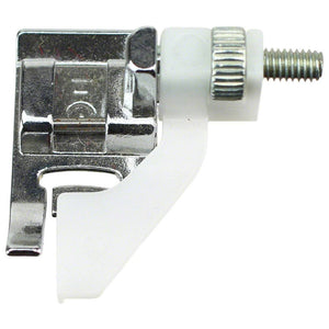 Finish your hems professionally with the easy-to-use Blind Hem foot. This foot creates the same invisible hem seen on ready-made dress pants, skirts, dresses, and even curtains. Simply install the foot, switch to a blind hem stitch, and line up your fold with the white guide bar.