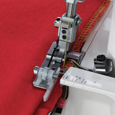 Blind hemming is never an easy technique and demands practice and patience. It is possible to sew your overlocker to blind hem and the blind stitch foot is equipped with a guide to help keep your stitching straight.