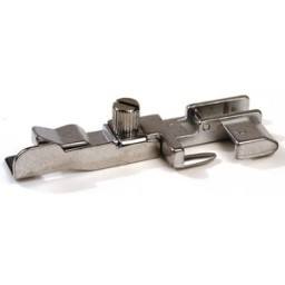 Finish your hems professionally with the easy-to-use Blind Hem foot. This foot creates the same invisible hem seen on ready-made dress pants, skirts, dresses, and even curtains. Simply install the foot, switch to a blind hem stitch, and line up your fold with the white guide bar.