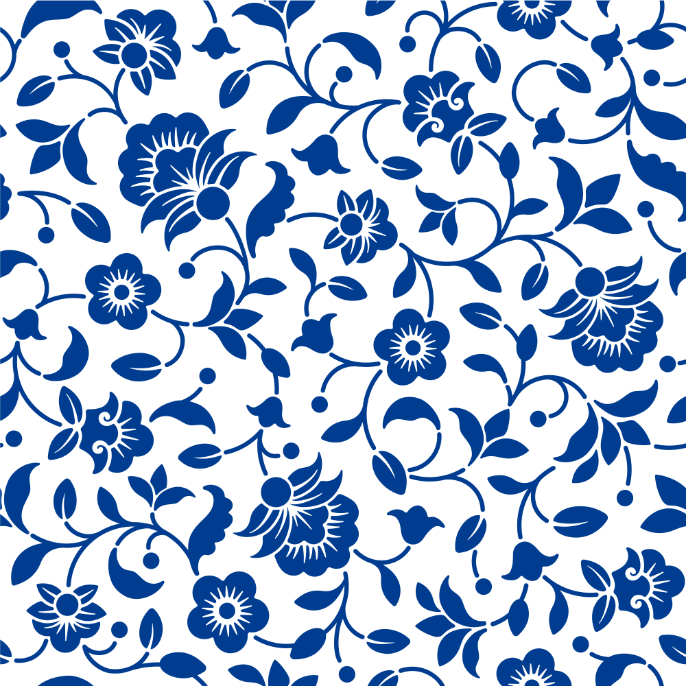 Blue Chic Elegance Floral Fabric - White Details