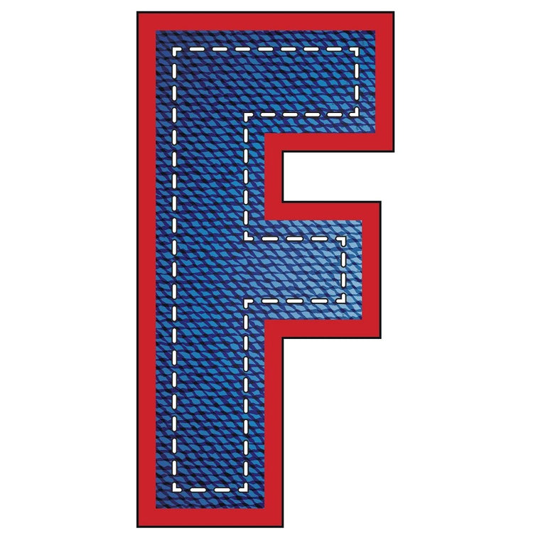 The Blue Jean "F" Fabric Panel is part of the Blue Jean Letters Fabric Collection printed by Sew Creative Fabrics. This panel is digitally printed on 100% cotton. This fabric panel is available in 6 different sizes: