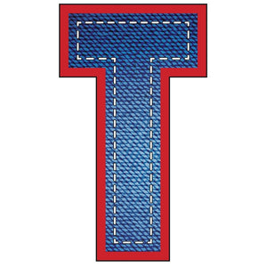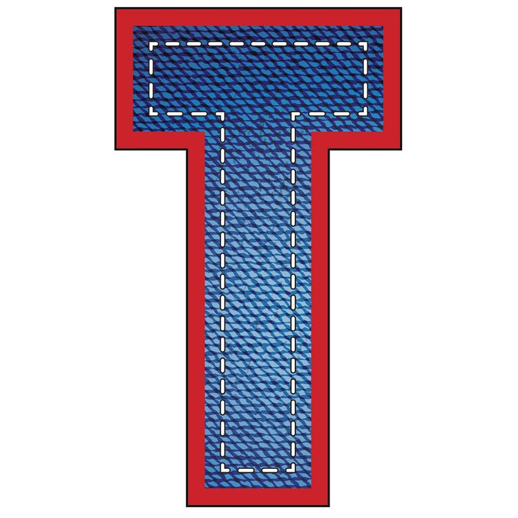 The Blue Jean "T" Fabric Panel is part of the Blue Jean Letters Fabric Collection printed by Sew Creative Fabrics. This panel is digitally printed on 100% cotton. This fabric panel is available in 6 different sizes: