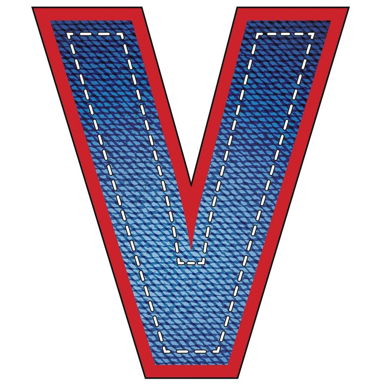 The Blue Jean "V" Fabric Panel is part of the Blue Jean Letters Fabric Collection printed by Sew Creative Fabrics. This panel is digitally printed on 100% cotton. This fabric panel is available in 6 different sizes: