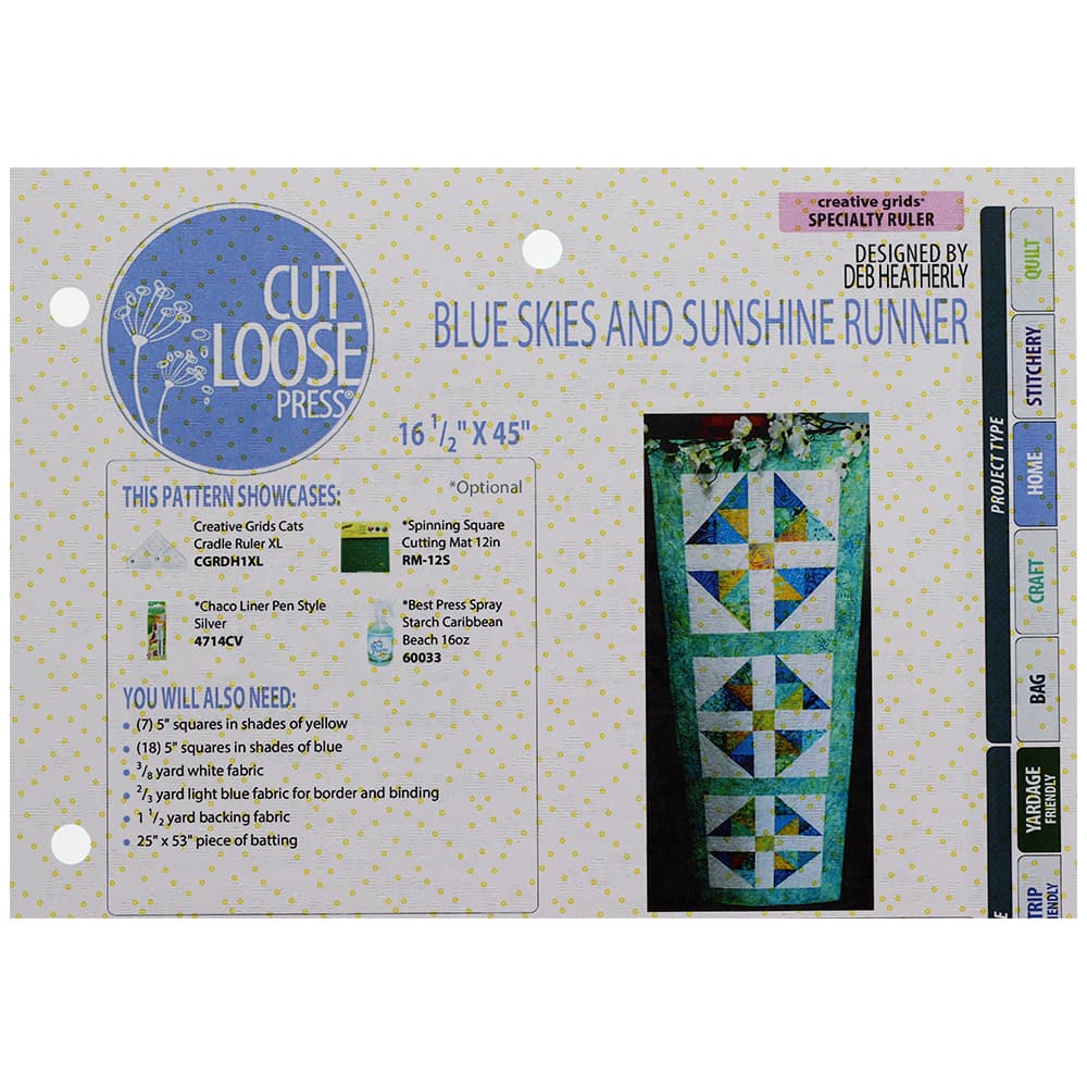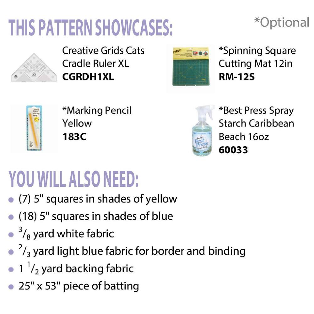 Designed by Deb Heatherly the Blue Skies and Sunshine Runner Pattern is the perfect table runner for any season. Use the XL Cat's Cradle Ruler to help save time when cutting out your blocks. Included with each Blue Skies and Sunshine Runner Pattern are step-by-step instructions and recommended materials.