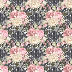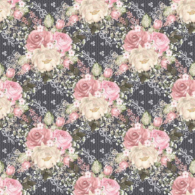 Blush Rose Bouquets & Lace Fabric - Black Details
