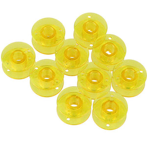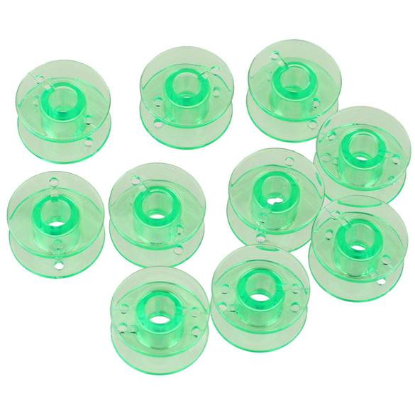 Organize your sewing thread neatly with the Bobbins (10pk), Class 15. This package contains 10 Class 15 bobbins that can be used to keep your thread in place when you are not using them for a project. Bobbins (10pk), Class 15 -- available in blue, green, pink, purple, yellow, multicolored, and clear. Continue reading below for guarantees on which machines can fit this Bobbins (10pk), Class 15 pack.