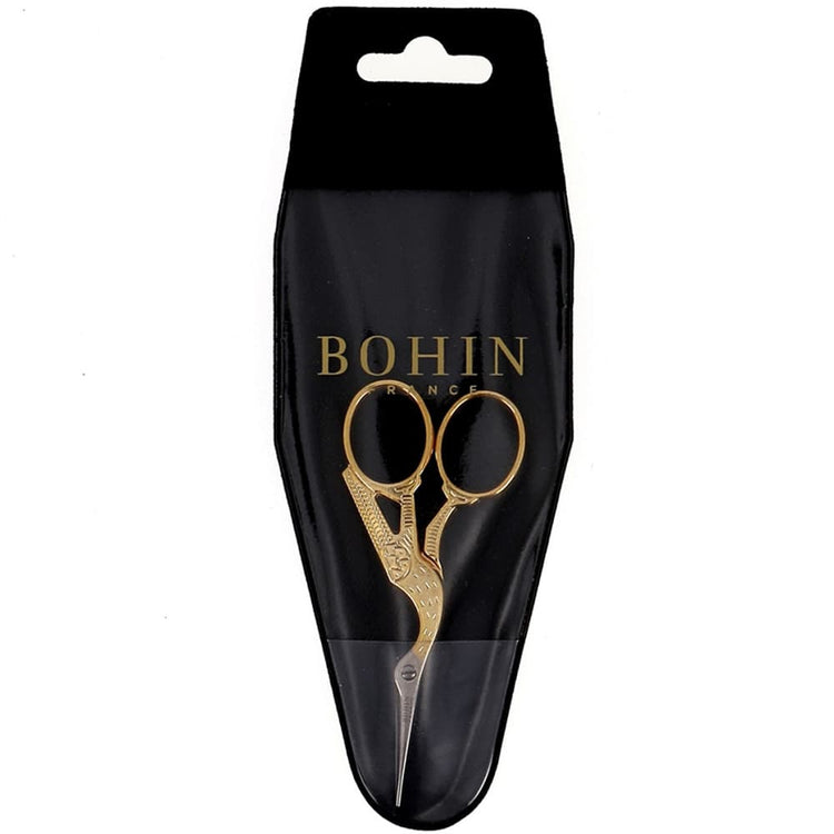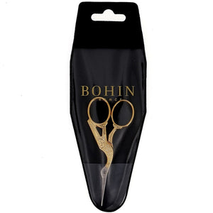 Bohin 4in Gilded Stork Scissors are perfect for a multitude of projects, from embroidery to miniature work. The high-quality blades are finely sharpened for superior cutting ability. Short blades and an extra-fine tip help to maneuver in tight spaces. The gilded stork handles add a sense of whimsy to these scissors.