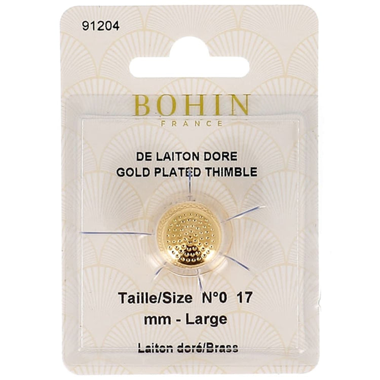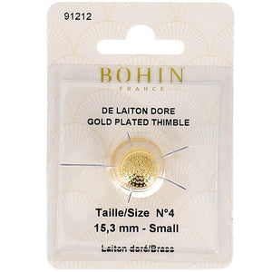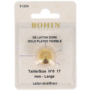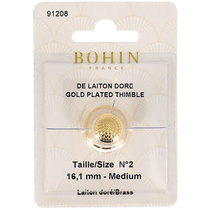 Bohin's Gold Plated Brass Thimble is a fantastic addition to your sewing toolkit. Polished gold plating provides a firm protective cover for safely pushing needles through layers of fabric. This thimble is available in medium or large.
