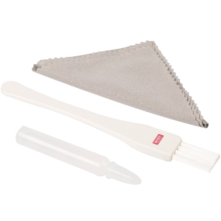 Keep your sewing machine running like new with Bohin's Machine Cleaning Kit. This three-piece set includes a lint brush, machine oil, and an anti-static cloth.