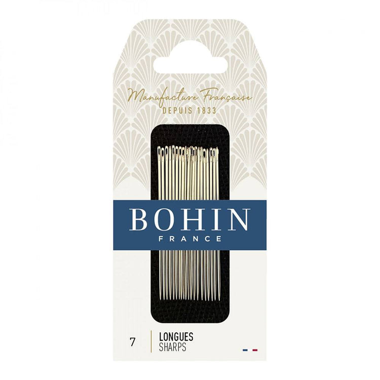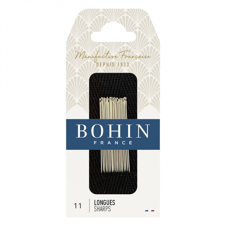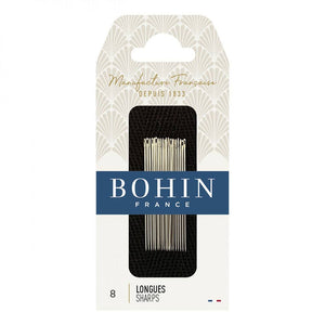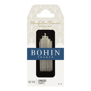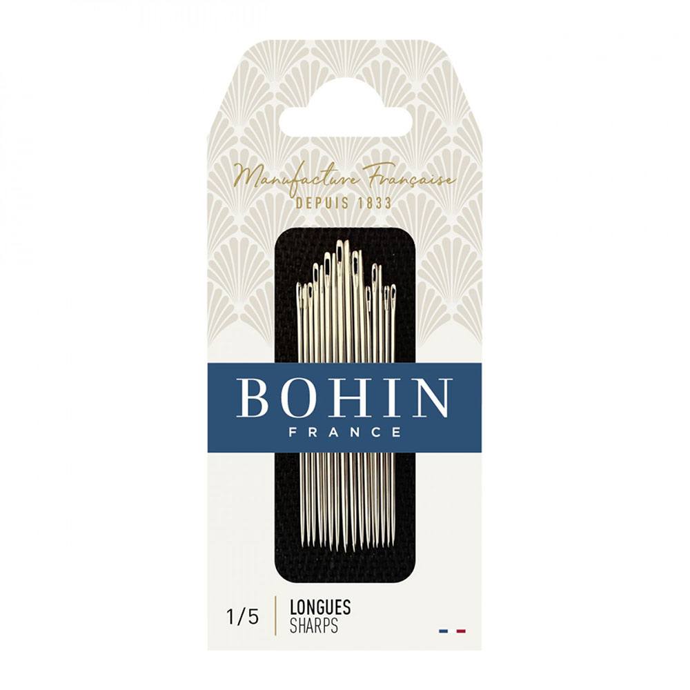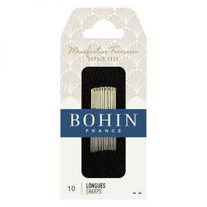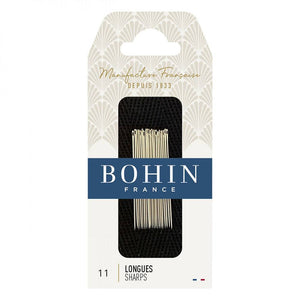 Bohin's Sharps Needles are strong, durable needles that resist bending. These needles feature a finely honed point to minimize fabric damage. Bohin uses a unique polishing process on the needle's eye, reducing thread breakage and helping the needle glide smoothly through fabric.