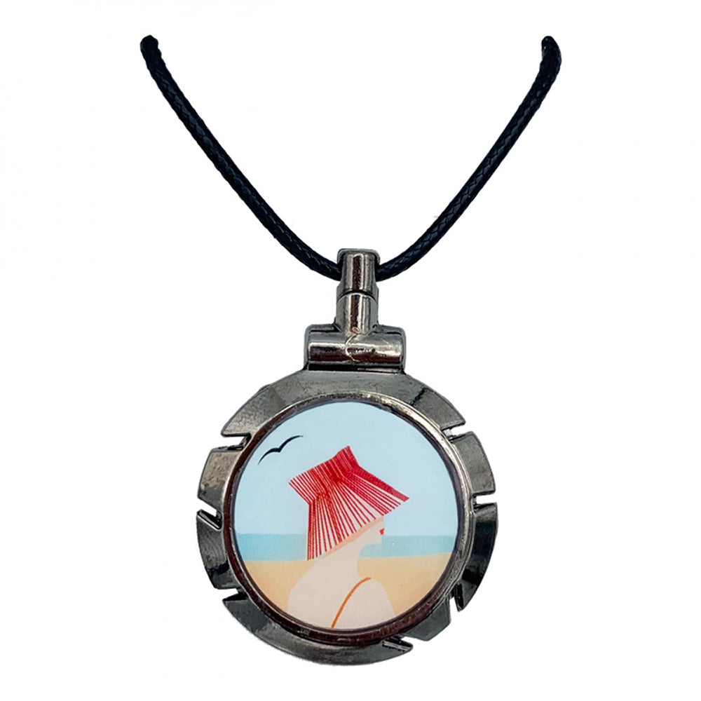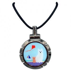 Bohin's Pendant Necklace Thread Cutter's are both pretty and practical. You can wear this functional piece of jewelry around town or just while sewing. It's safer than cutting with scissors and comes with a 29" leather cord. Slide your string through one of seven grooves on the side of the pendant to cut your thread. Each Thread Cutter Pendant Necklace has a diameter of 1-1/8" and is 1-1/2" tall and is available in six different designs.