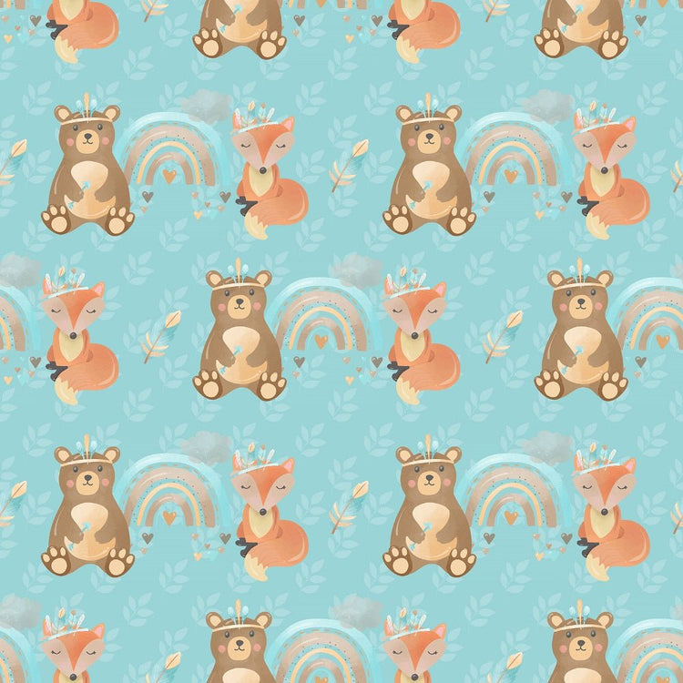 The Blue Boho Woodland Bears and Foxes Fabric is part of the Boho Woodland Fabric Collection printed by Sew Creative Fabrics. Digitally Printed on 100% cotton.