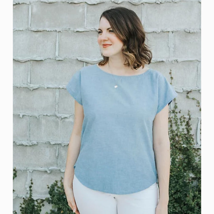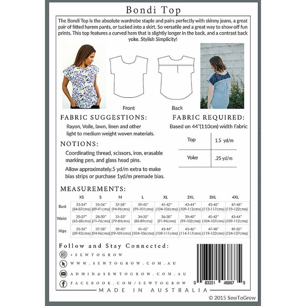 The Bondi Top Pattern by Sew to Grow is a must-have for your clothing collection. It can be paired with skinny jeans or worn tucked-in with a skirt. The Bondi Top has a back hem that is slightly longer than the front, with a stylish curve. A contrasting back yoke lets you play with prints and solids to design a piece that suits you perfectly. The Bondi Top can be made in sizes XS to XXL.