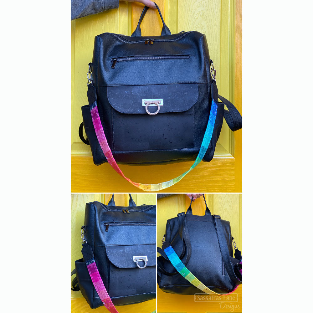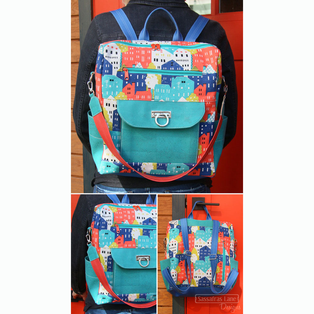 Tote your belongings safely with this stylish, versatile backpack pattern! With the Boulder Backpack, you can keep your essential items close at hand in the front pocket with a unique flip lock clasp and the zipper pocket above. The two additional side pockets are ideal for holding a water bottle or even an umbrella. For extra-important items, there is a hidden backside zipper and an interior zipper pocket. The Boulder Backpack can be worn as a backpack or thrown over your shoulder using the additional strap. The Boulder Backpack Pattern includes detailed instructions and a suggested list of materials. The finished bag measures 13" wide, 15" tall, and 5.5" deep at the base. Recommended for intermediate-level sewists.