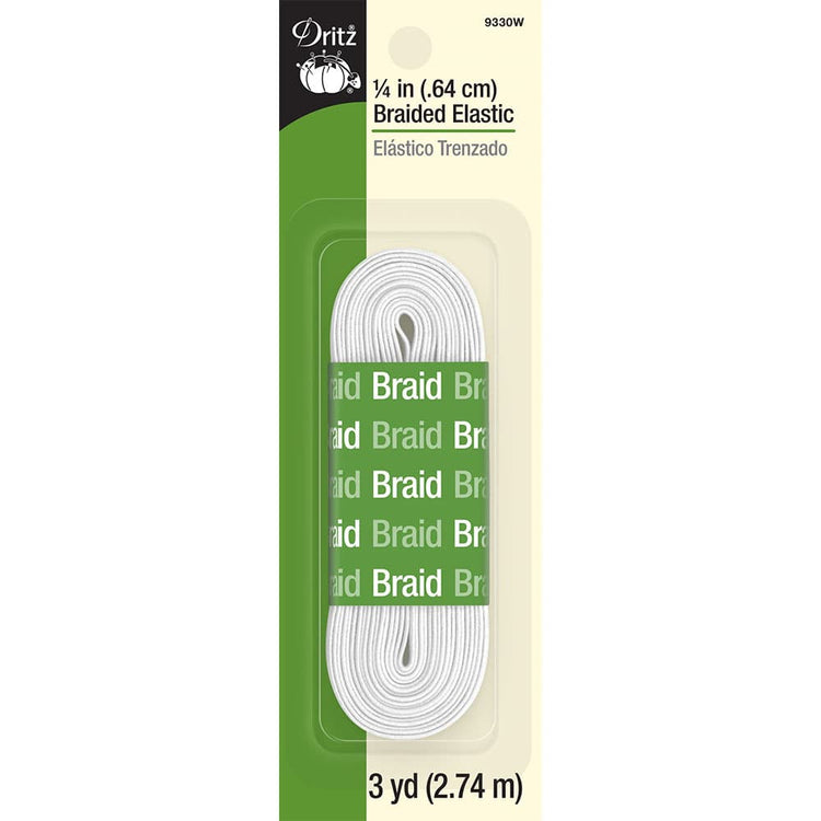 Dritz's 1/4" lightweight Braided Elastic is suitable for multiple projects. You can use this super-stretchy, ribbed elastic in masks, swimwear, crafts, and more. If it ever gets dirty or dingy, don't worry, it is machine washable. When stretched, the Braided Elastic narrows but returns to its original shape when there is no tension. Each pack contains three yards of 1/4" elastic.