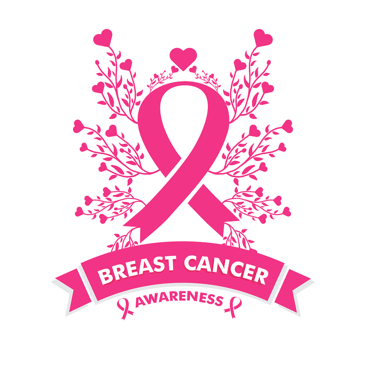 Breast Cancer Awareness Floral Hearts Fabric Panel