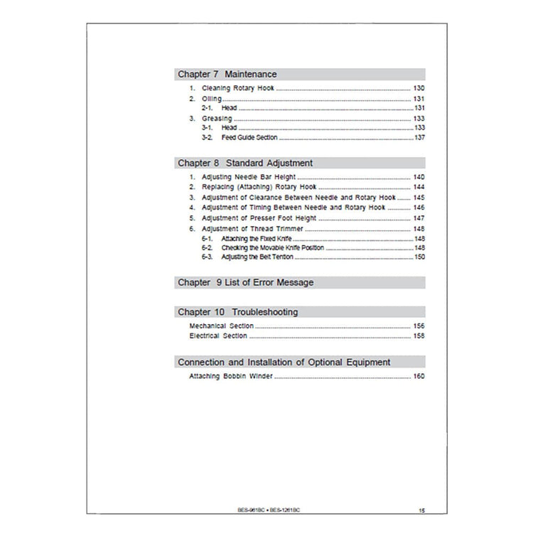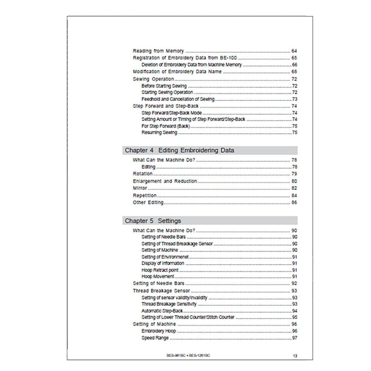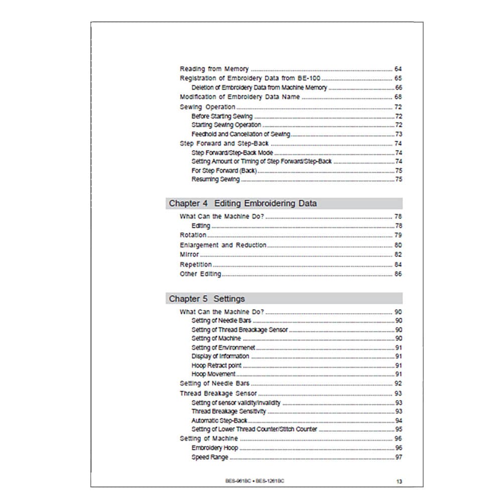 Brother BES-961BC Sewing Machine Instruction Manual (Model 961BC/1261BC) - 164 Pages. Lost your sewing machine's manual? We've got you covered! This instruction manual is the ultimate guide to unlock the full potential of your Brother BES-961BC. No more confusion or frustration—just clear, concise instructions right at your fingertips. What's inside? Everything you need to know from setting up to mastering your sewing machine and all its features.