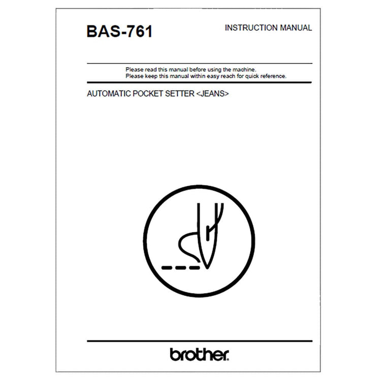 Brother BAS-761 Sewing Machine Instruction Manual (Model 761) - 47 Pages. Lost your sewing machine's manual? We've got you covered! This instruction manual is the ultimate guide to unlock the full potential of your Brother BAS-761. No more confusion or frustration—just clear, concise instructions right at your fingertips. What's inside? Everything you need to know from setting up to mastering your sewing machine and all its features.