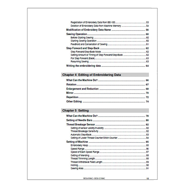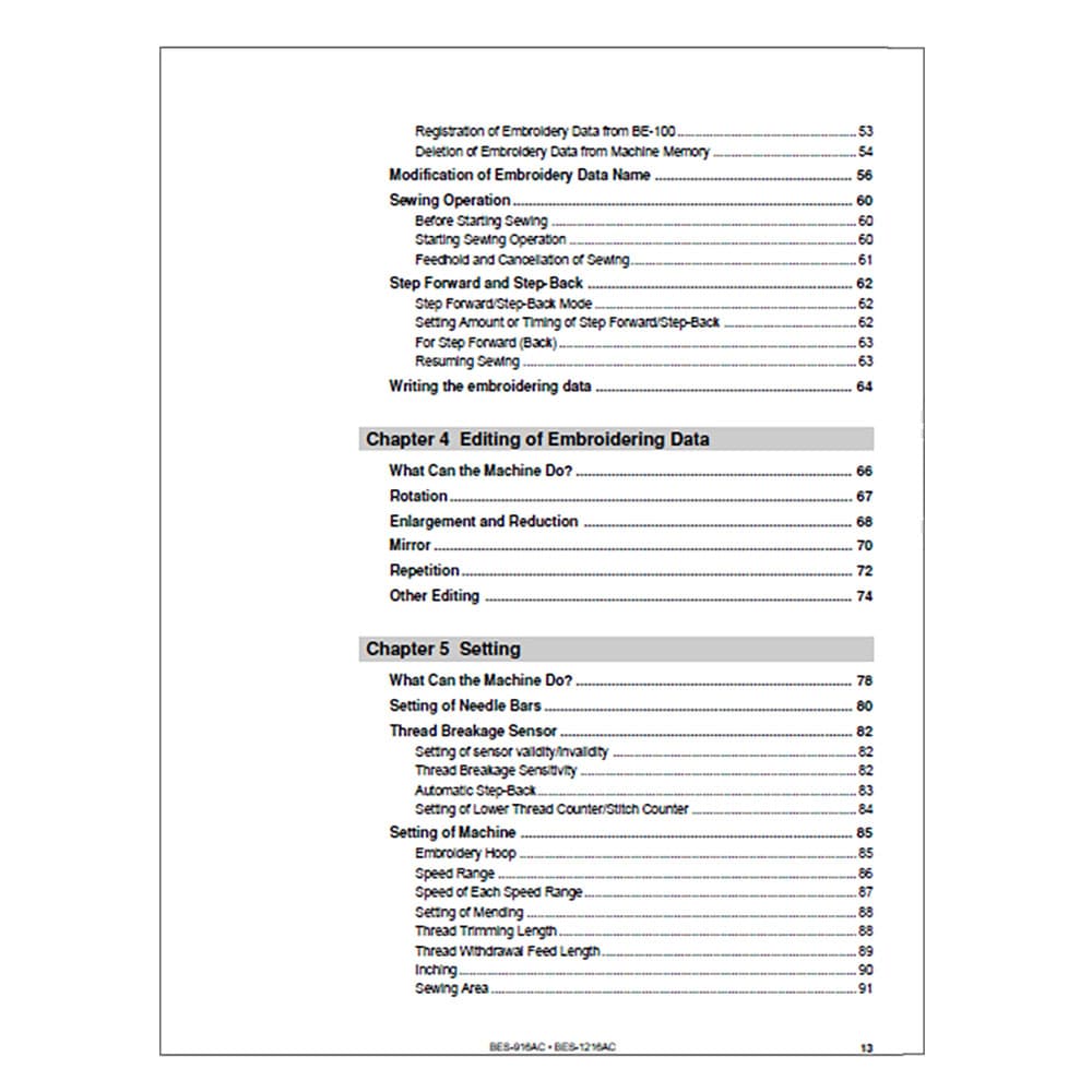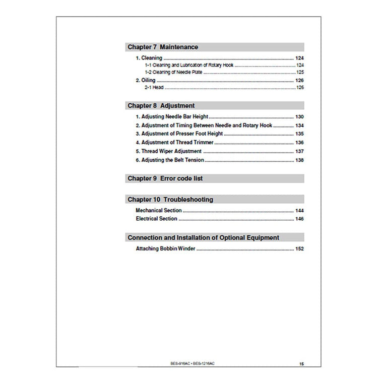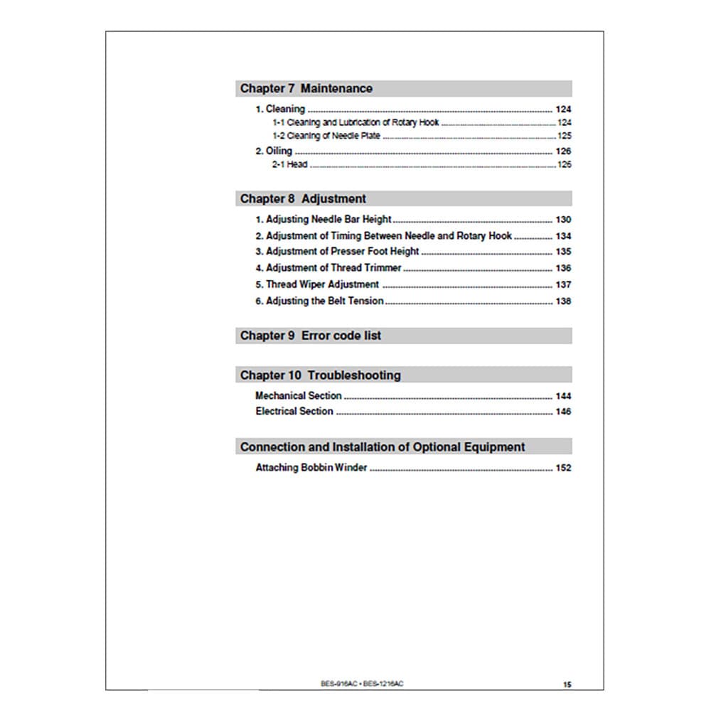 Brother BES-1216AC Sewing Machine Instruction Manual (Model 916AC/1216AC) - 157 Pages. Lost your sewing machine's manual? We've got you covered! This instruction manual is the ultimate guide to unlock the full potential of your Brother BES-1216AC. No more confusion or frustration—just clear, concise instructions right at your fingertips. What's inside? Everything you need to know from setting up to mastering your sewing machine and all its features.