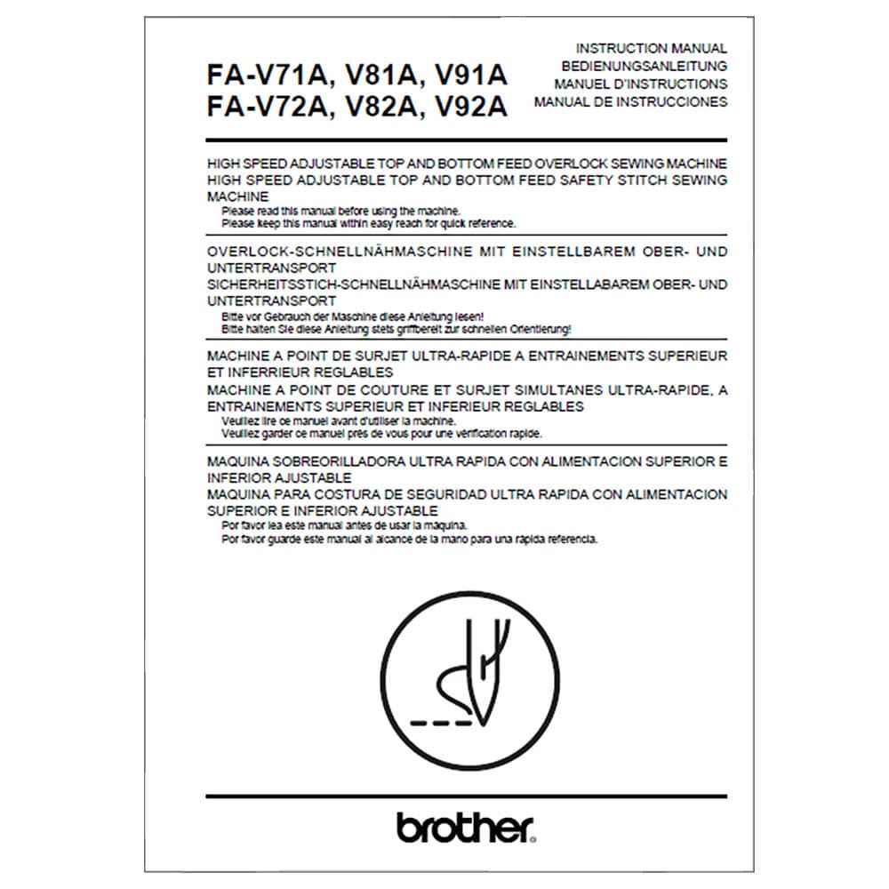 Brother FA-V82A Sewing Machine Instruction Manual (Model V71A/V72A/V81A/V82A/V91A/V92A) - 16 Pages. Lost your sewing machine's manual? We've got you covered! This instruction manual is the ultimate guide to unlock the full potential of your Brother FA-V82A. No more confusion or frustration—just clear, concise instructions right at your fingertips. What's inside? Everything you need to know from setting up to mastering your sewing machine and all its features.