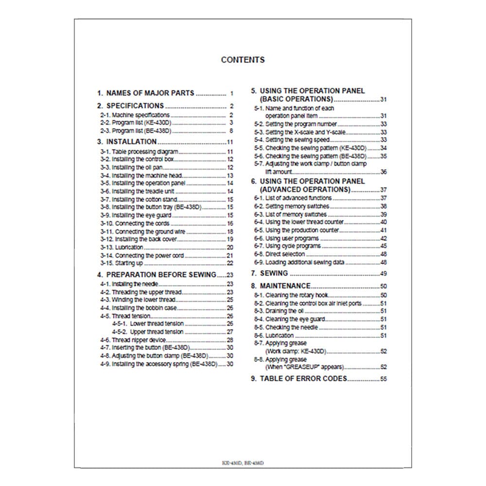 Brother KE-430D Sewing Machine Instruction Manual (Model KE-430D/BE-438D) - 66 Pages. Lost your sewing machine's manual? We've got you covered! This instruction manual is the ultimate guide to unlock the full potential of your Brother KE-430D. No more confusion or frustration—just clear, concise instructions right at your fingertips. What's inside? Everything you need to know from setting up to mastering your sewing machine and all its features.