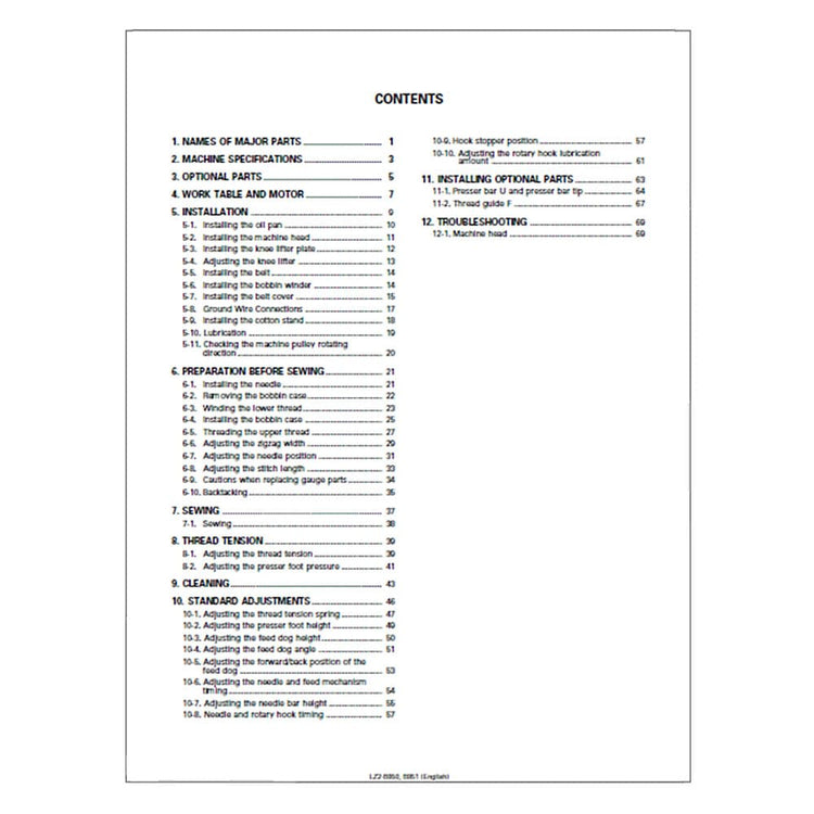 Brother LZ2-B850W Sewing Machine Instruction Manual (Model B850/B850W/B851) - 104 Pages. Lost your sewing machine's manual? We've got you covered! This instruction manual is the ultimate guide to unlock the full potential of your Brother LZ2-B850W. No more confusion or frustration—just clear, concise instructions right at your fingertips. What's inside? Everything you need to know from setting up to mastering your sewing machine and all its features.
