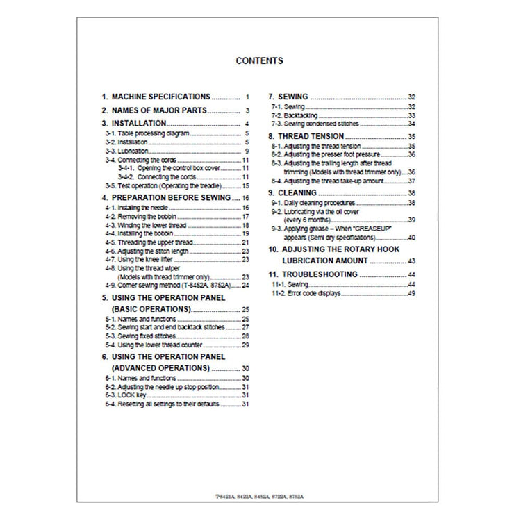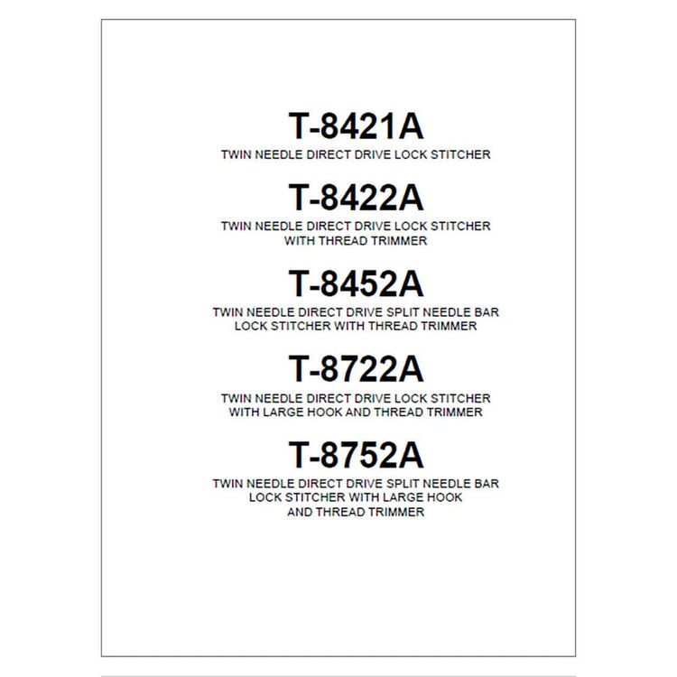 Brother T-8422A Sewing Machine Instruction Manual (Model 8421A/8422A/8452A/8722A/8752A) - 57 Pages. Lost your sewing machine's manual? We've got you covered! This instruction manual is the ultimate guide to unlock the full potential of your Brother T-8422A. No more confusion or frustration—just clear, concise instructions right at your fingertips. What's inside? Everything you need to know from setting up to mastering your sewing machine and all its features.