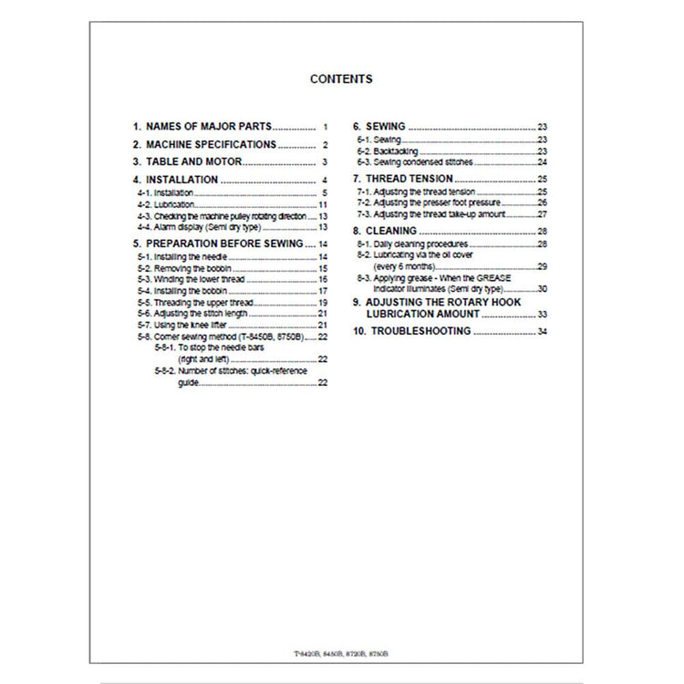 Brother T-8750B Sewing Machine Instruction Manual (Model 8420B/8450B/8720B/8750B) - 44 Pages. Lost your sewing machine's manual? We've got you covered! This instruction manual is the ultimate guide to unlock the full potential of your Brother T-8750B. No more confusion or frustration—just clear, concise instructions right at your fingertips. What's inside? Everything you need to know from setting up to mastering your sewing machine and all its features.