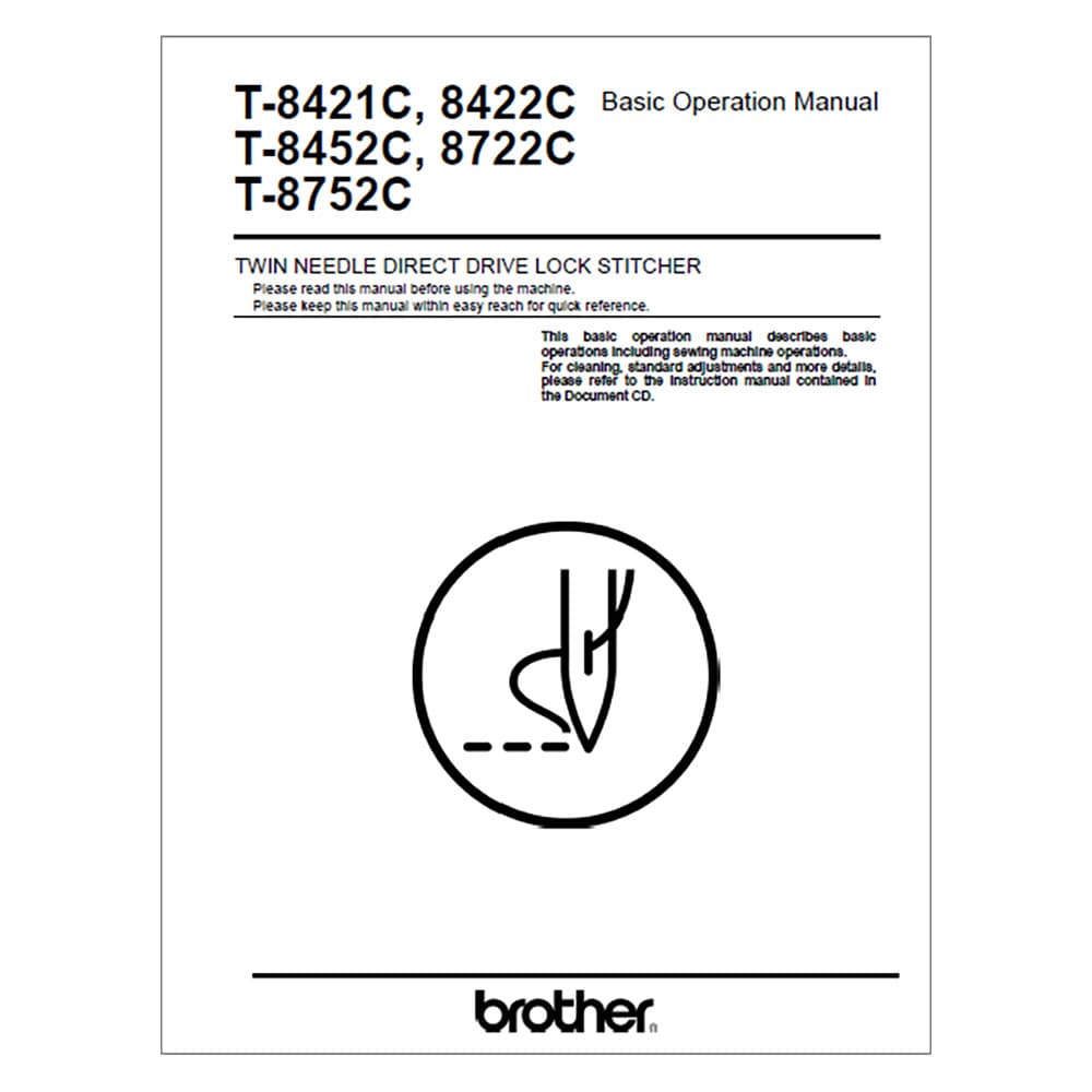 Brother T-8752C Sewing Machine Instruction Manual (Model 8421C/8422C/8452C/8722C/8752C) - 40 Pages. Lost your sewing machine's manual? We've got you covered! This instruction manual is the ultimate guide to unlock the full potential of your Brother T-8752C. No more confusion or frustration—just clear, concise instructions right at your fingertips. What's inside? Everything you need to know from setting up to mastering your sewing machine and all its features.