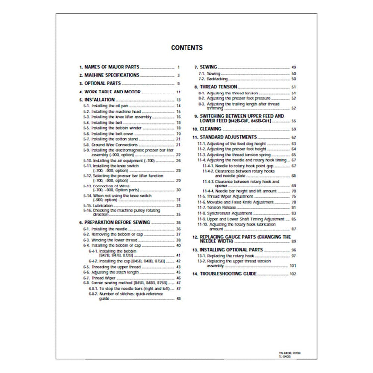 Brother TL-847B Sewing Machine Instruction Manual (Model 842B/845B/847B/848B/872B/875B/) - 136 Pages. Lost your sewing machine's manual? We've got you covered! This instruction manual is the ultimate guide to unlock the full potential of your Brother TL-847B. No more confusion or frustration—just clear, concise instructions right at your fingertips. What's inside? Everything you need to know from setting up to mastering your sewing machine and all its features.