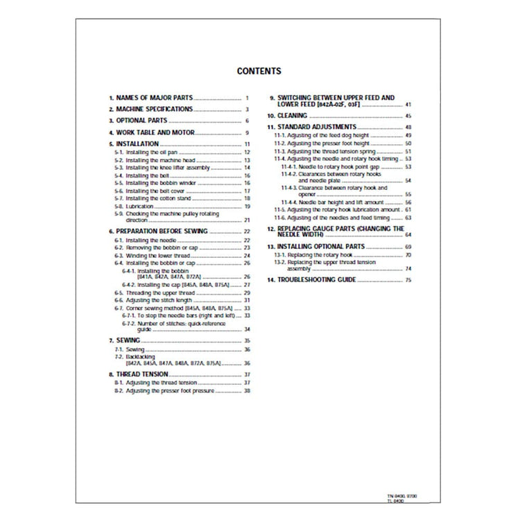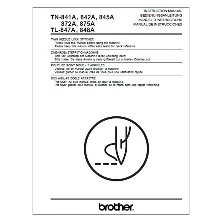 Brother TN-842A Sewing Machine Instruction Manual (Model 841A/842A/845A/847A/848A/872A/848A) - 98 Pages. Lost your sewing machine's manual? We've got you covered! This instruction manual is the ultimate guide to unlock the full potential of your Brother TN-842A. No more confusion or frustration—just clear, concise instructions right at your fingertips. What's inside? Everything you need to know from setting up to mastering your sewing machine and all its features.
