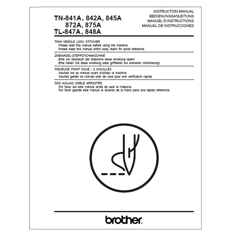Brother TN-845A Sewing Machine Instruction Manual (Model 841A/842A/845A/847A/848A/872A/875A) - 98 Pages. Lost your sewing machine's manual? We've got you covered! This instruction manual is the ultimate guide to unlock the full potential of your Brother TN-845A. No more confusion or frustration—just clear, concise instructions right at your fingertips. What's inside? Everything you need to know from setting up to mastering your sewing machine and all its features.