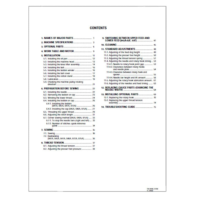 Brother TN-872A Sewing Machine Instruction Manual (Model 841A/842A/845A/847A/848A/872A/875A) - 98 Pages. Lost your sewing machine's manual? We've got you covered! This instruction manual is the ultimate guide to unlock the full potential of your Brother TN-872A. No more confusion or frustration—just clear, concise instructions right at your fingertips. What's inside? Everything you need to know from setting up to mastering your sewing machine and all its features.