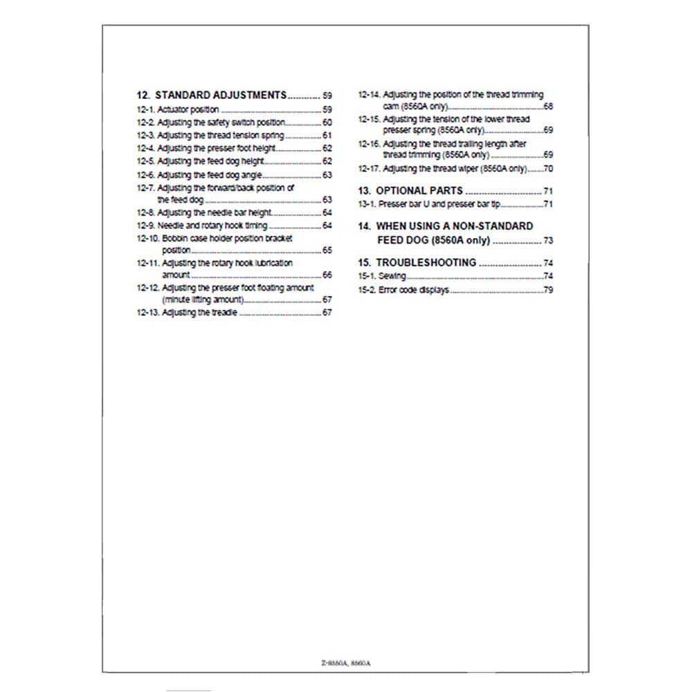 Brother Z-8550A Instruction Manual Details
