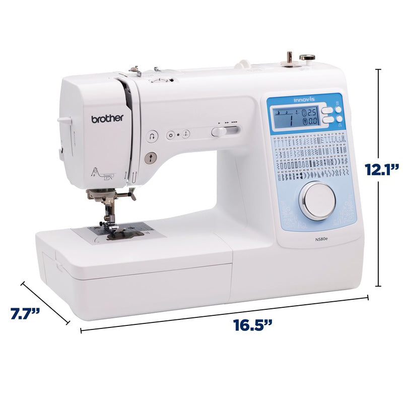 The Brother Innov-ís NS80E Sewing Machine is a versatile and feature-rich model designed to cater to both beginners and experienced sewers. With 80 built-in stitches, including utility, decorative, and heirloom stitches, this machine offers a wide array of options for various sewing projects. The NS80E also features an advanced needle threading system, an automatic thread cutter, and a large LCD screen, making selecting and customizing stitches easy. Its compact and lightweight design ensures that it is easy to transport and store, while the durable construction promises long-lasting performance.