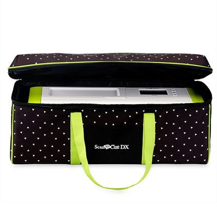 Featuring lime green piping and a front pocket embroidered with the ScanNCut DX logo, this tote is designed to meet all your ScanNCut DX needs. With an internal size of 8.5" x 8.5" x 23.2", it perfectly fits all Brother ScanNCut DX machines. The tote is equipped with a padded shoulder strap and convenient carrying handles, making transportation a breeze. All Brother accessories are thoroughly tested for compatibility with Brother sewing machines, ensuring you can craft with confidence. Don't wait—start working on your next project today with the Brother ScanNCut DX Cutting Machine Storage.
