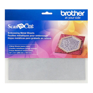 These Brother ScanNCut Embossing Silver Metal Sheets are perfect for crafting unique embossing projects, from greeting cards to home décor items. The set includes two metal sheets, each measuring 7.9" x 6.1". To protect the scanner glass, embossing tool, and the silver surface, each sheet is covered with self-adhesive layers on both the front and back. These sheets are made from high-quality aluminum, adding a sleek finish to your creative projects.