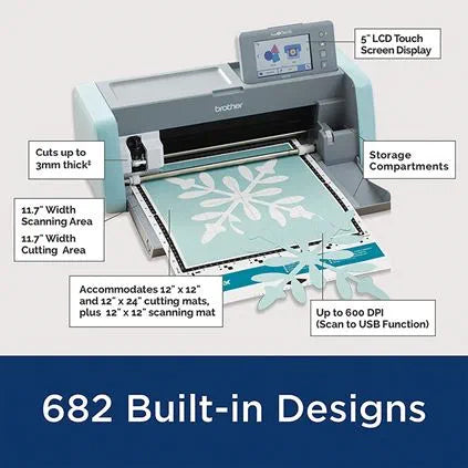 Unleash your creativity with the Brother SDX125E ScanNCut DX, the only home-cutting machine series with a built-in scanner and automatic blade adjustment. Perfect for crafters, quilters, and sewing enthusiasts alike, this electronic cutting machine simplifies intricate cutting tasks with whisper-quiet precision. Whether you're working with paper, vinyl, felt, or even foam up to 3mm thick, the Auto Blade sensor technology ensures clean, fray-free cuts without the need for manual blade adjustment. With 682 built-in designs, 100 quilt patterns, 9 fonts, and access to exclusive design collections via CanvasWorkspace, your next project is only a few taps away.