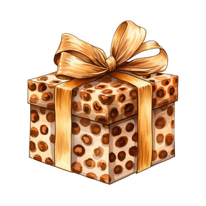 The Brown & Gold Gift Box 3 Fabric Panel is a part of the Brown & Gold Highland Cows Fabric Collection printed by Sewing Parts Online. Digitally Printed on 100% cotton.
