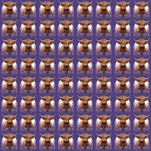Brown Highland Cows & Flowers Portrait Fabric- Purple