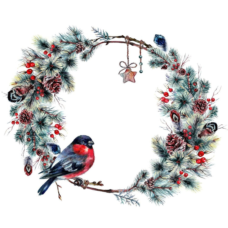 Bullfinch & Lush Pine Wreath Fabric Panel