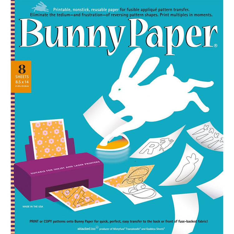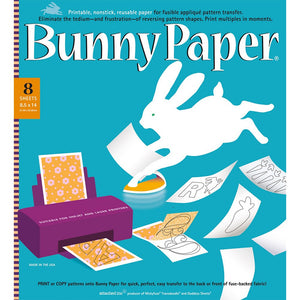 Bunny Paper offers you a new, faster way to transfer pattern designs for fusible applique, without sacrificing convenience or accuracy. You can even print directly from your computer! Bunny Paper can also be used with most laser and inkjet printers so you can print fusible labels or images directly on your choice of fuse-backed fabric. Each sheet measures 8-1/2" wide by 14" long and comes in a pack of 8.