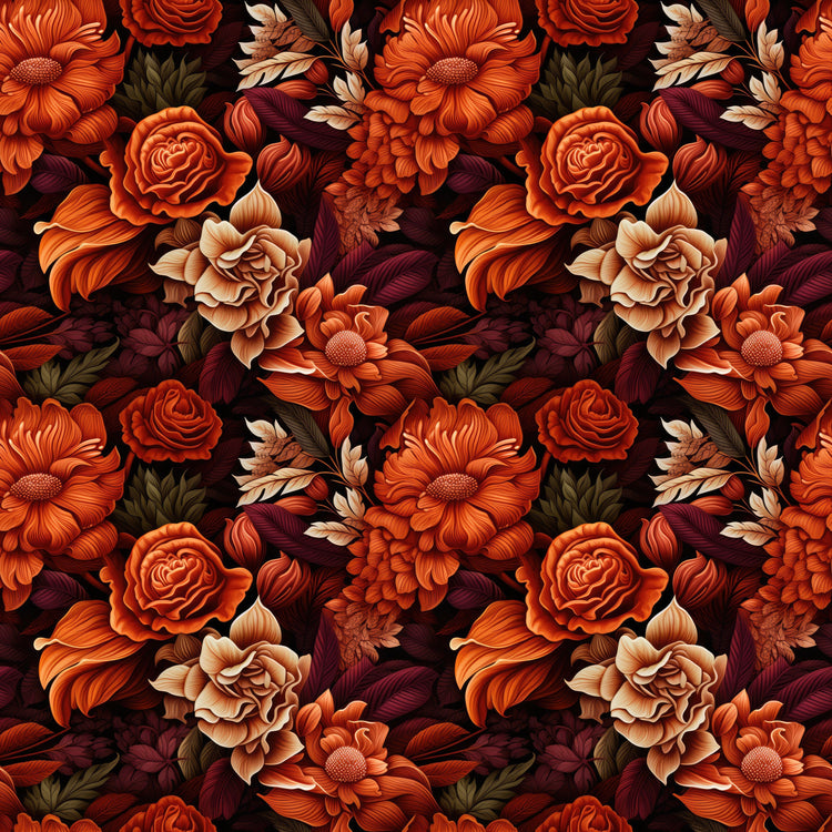 The Burnt Orange & Maroon Floral Fabric is part of the Floral Fabric Collection printed by Sew Creative Fabrics. Digitally Printed on 100% cotton and measures 43-45" wide. Sew Creative Fabrics prints are only available through Sewing Parts Online, not sold in stores or anywhere else online. * Proudly Manufactured in Dickson, Tennessee USA! *