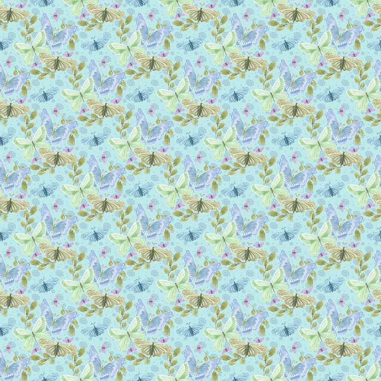 The Teal Butterflies on Floral Fabric is part of the Beautiful Butterfly Fabric Collection printed by Sew Creative Fabrics. Digitally Printed on 100% cotton and measures 43-44" wide.