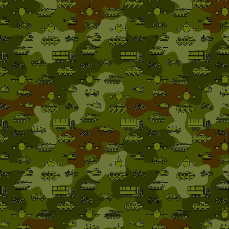 The Camouflage Military Transportation Fabric is a part of the Military Fabric Collection printed by Sew Creative Fabrics. Digitally Printed on 100% cotton and measures 42-43" wide. Sew Creative Fabrics prints are only available through Sewing Parts Online, not sold in stores or anywhere else online. * Proudly Manufactured in Dickson, Tennessee USA! *
