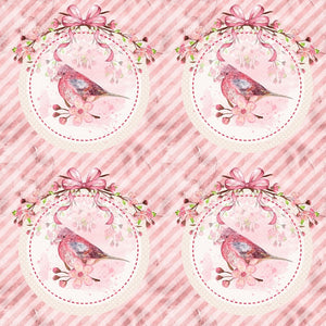 Cardinal with Cherry Blossoms and Bow Striped Fabric
