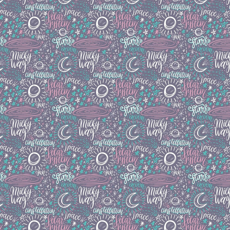 Pink & Purple Cartoon Astronomy Drawings Fabric Details