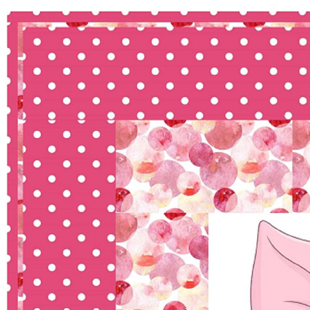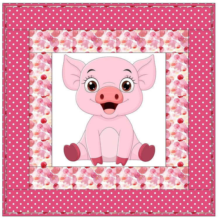 The Cartoon Baby Pig Wall Hanging includes everything that you need to make the quilt - the instructions and a total of 3 1/2 yards of fabric and a 23" panel. It has two borders and is finished with a flange binding. Batting is sold separately. The finished size of this quilt is 42" x 42".