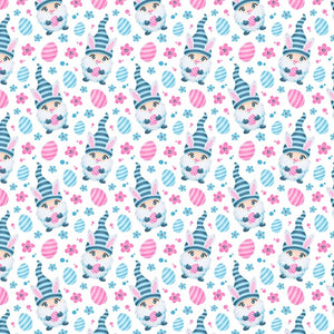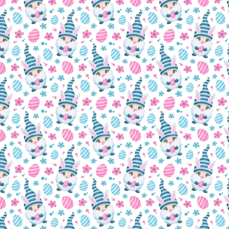 Cartoon Easter Bunny Gnome Fabric - Blue