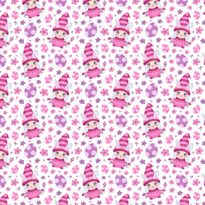 Cartoon Girl Easter Bunny Gnome Fabric - Pink Details